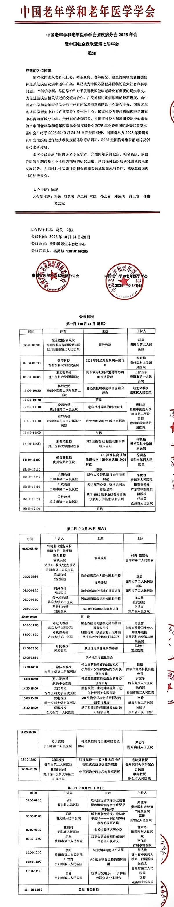 中国老年学和老年医学学会脑疾病分会2025年会暨中国帕金森联盟第七届年会